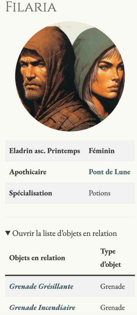 La création de mon univers de Dermonya progresse bien. Je me suis beaucoup concentré sur les systèmes de jeu maison comme la gestion d’équipement, les quêtes de la Guilde des Mercenaires ou encore la mise en place des spécialisation pour les Apothicaires.