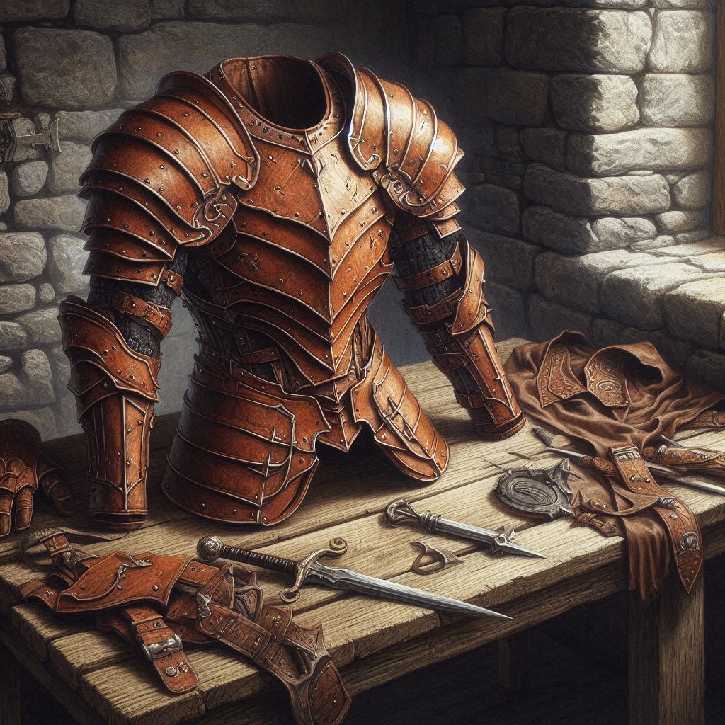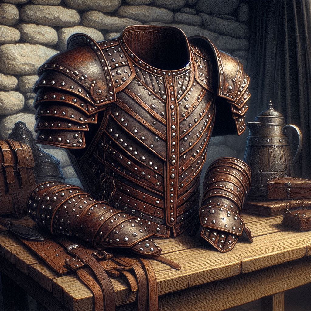 Une armure de cuir légère et résistante. Elle convient parfaitement à un rôdeur ou un citoyen qui ne dispose pas des moyens pour s’offrir une véritable armure.