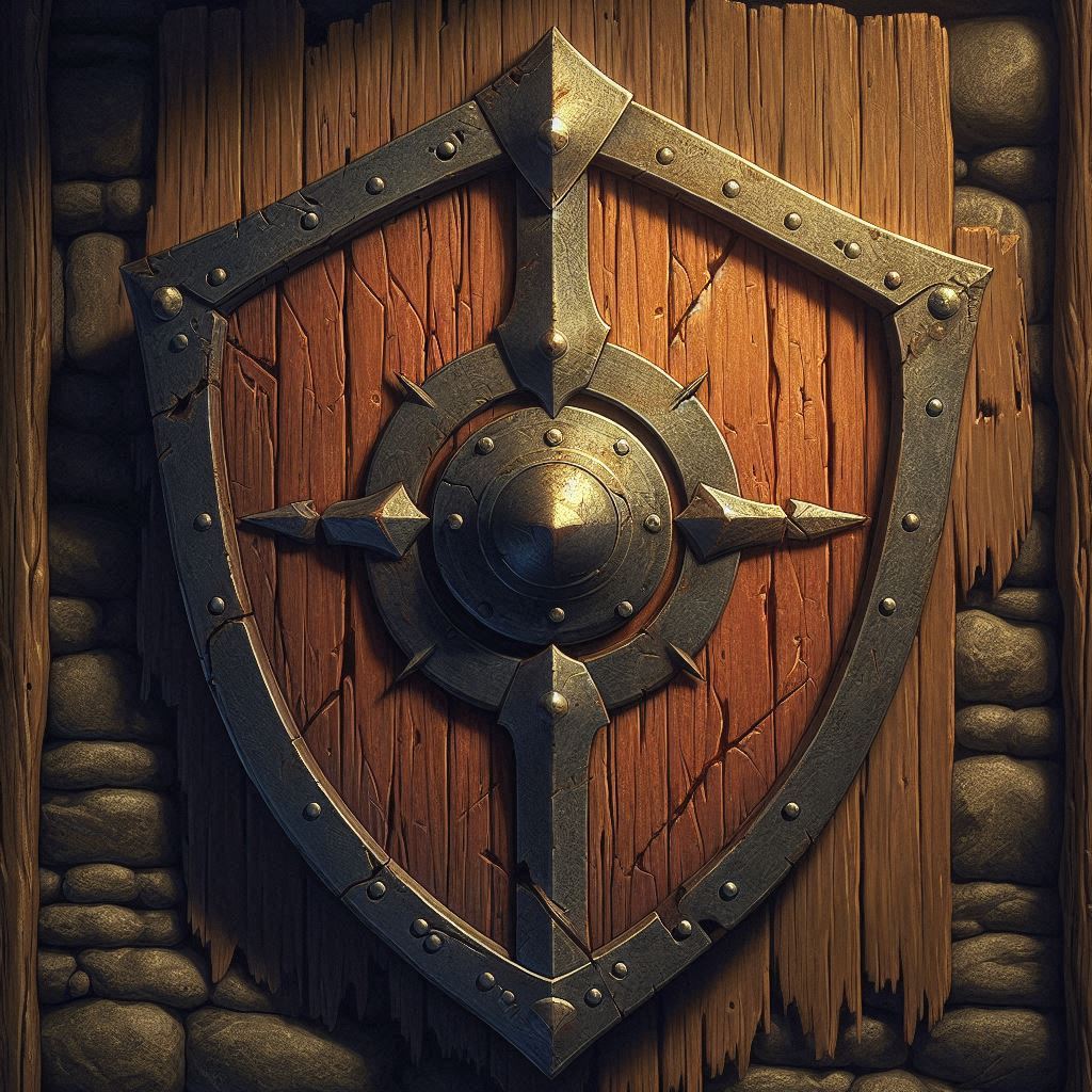 Un bouclier standard de bonne facture. Rond ou en forme d’écu, il est parfois employé avec une Epée Longue ou tout autre arme à une main. Il protège efficacement son porteur.