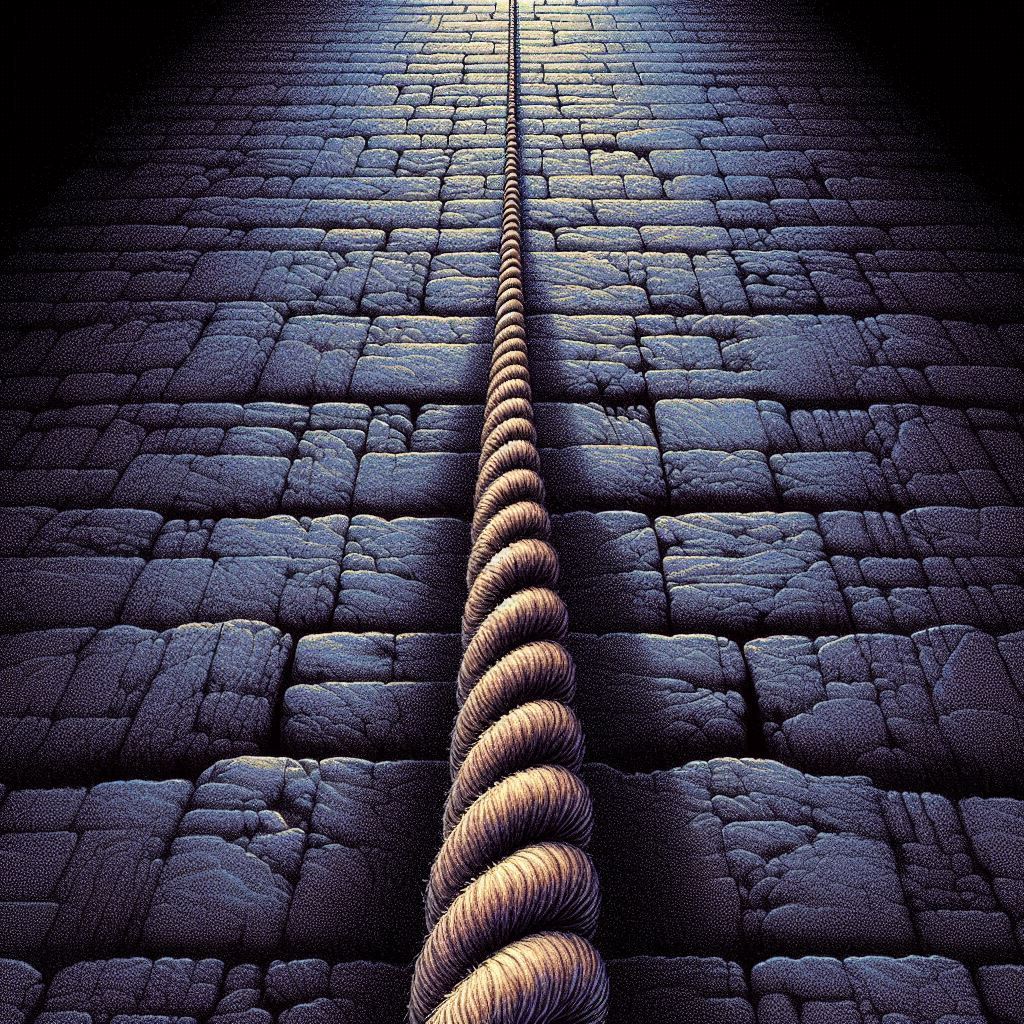 Un corde en chanvre de quinze mètres suffisamment longue et solide pour grimper ou entraver un individu.